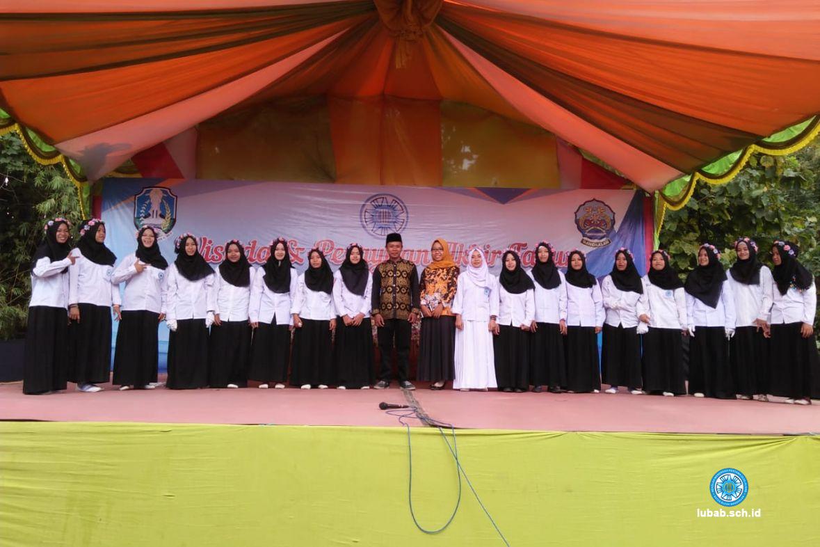 Pose Bersama Paduan Suara Ulul Albab, Ibu Anita, S.Pd. (Guru Smp Ulul Albab) Dan Ust. Rosyadi (Pianis sekaligus Alumni Smp Ulul Albab) di atas pentas Pesta Akhir Tahun Ulul Albab