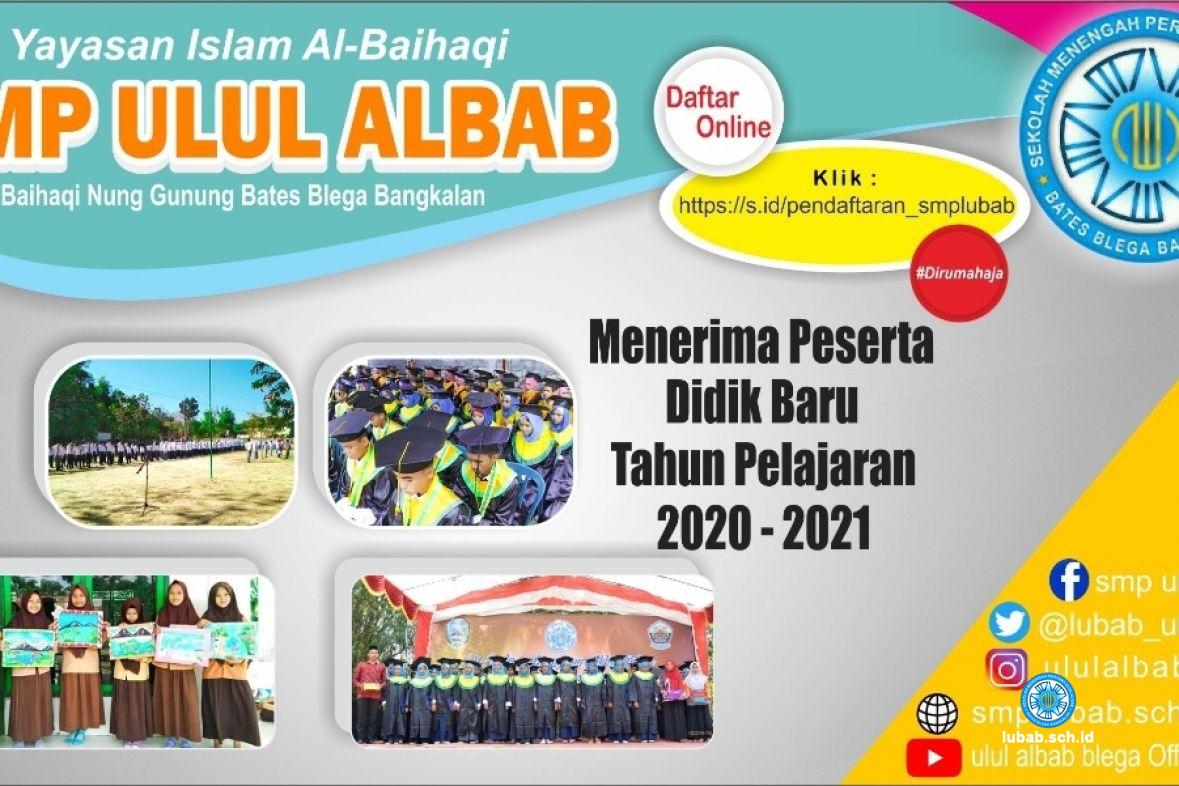 Kami Panitia dan Pengelola SMP Ulul Albab Nong Gunong Bates Blega Bangkalan telah membuka pendaftaran peserta didik baru. Tempat Pendaftaran bisa mendatangani Kantor SMP Ulul Albab atau mengunjungi link pendaftaran online.